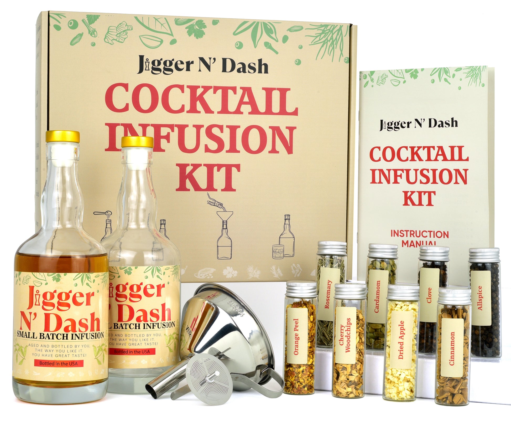 ✅ LOOKS GREAT ON YOUR COUNTER! - The Jigger N' Dash cocktail infusion kit adds flair to any spirit with natural ingredients. This ideal gift for cocktail lovers puts your personal touch of flavor to "spice up" any boring traditional cocktail.